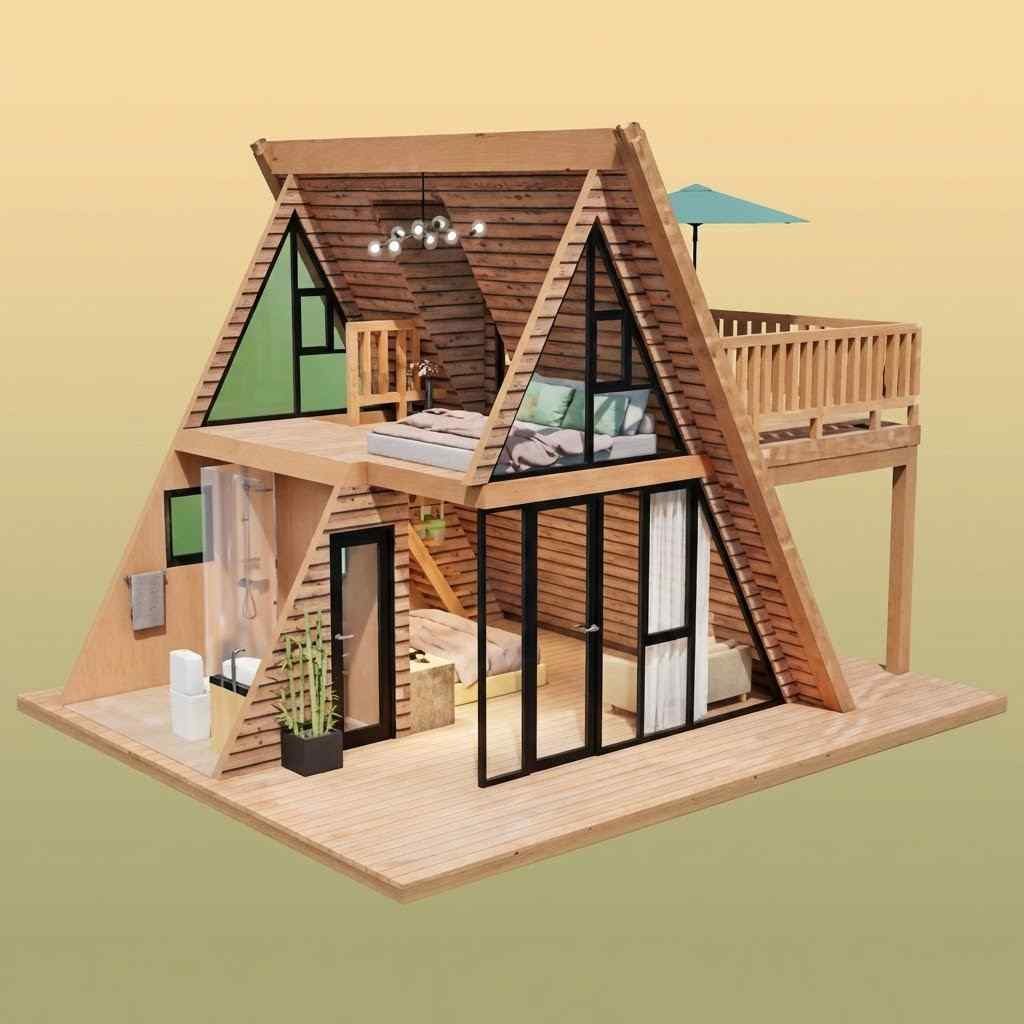 The triangular A-frame design is timeless, energy-efficient, and hugely popular in 2026. Several manufacturers offer pre-cut or modular A-frame kits with floor-to-ceiling windows, lofts, and cute porches — many landing right around or under $30K.