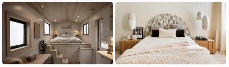 Minimalist tiny house bedrooms prioritize calm and clutter-free living.